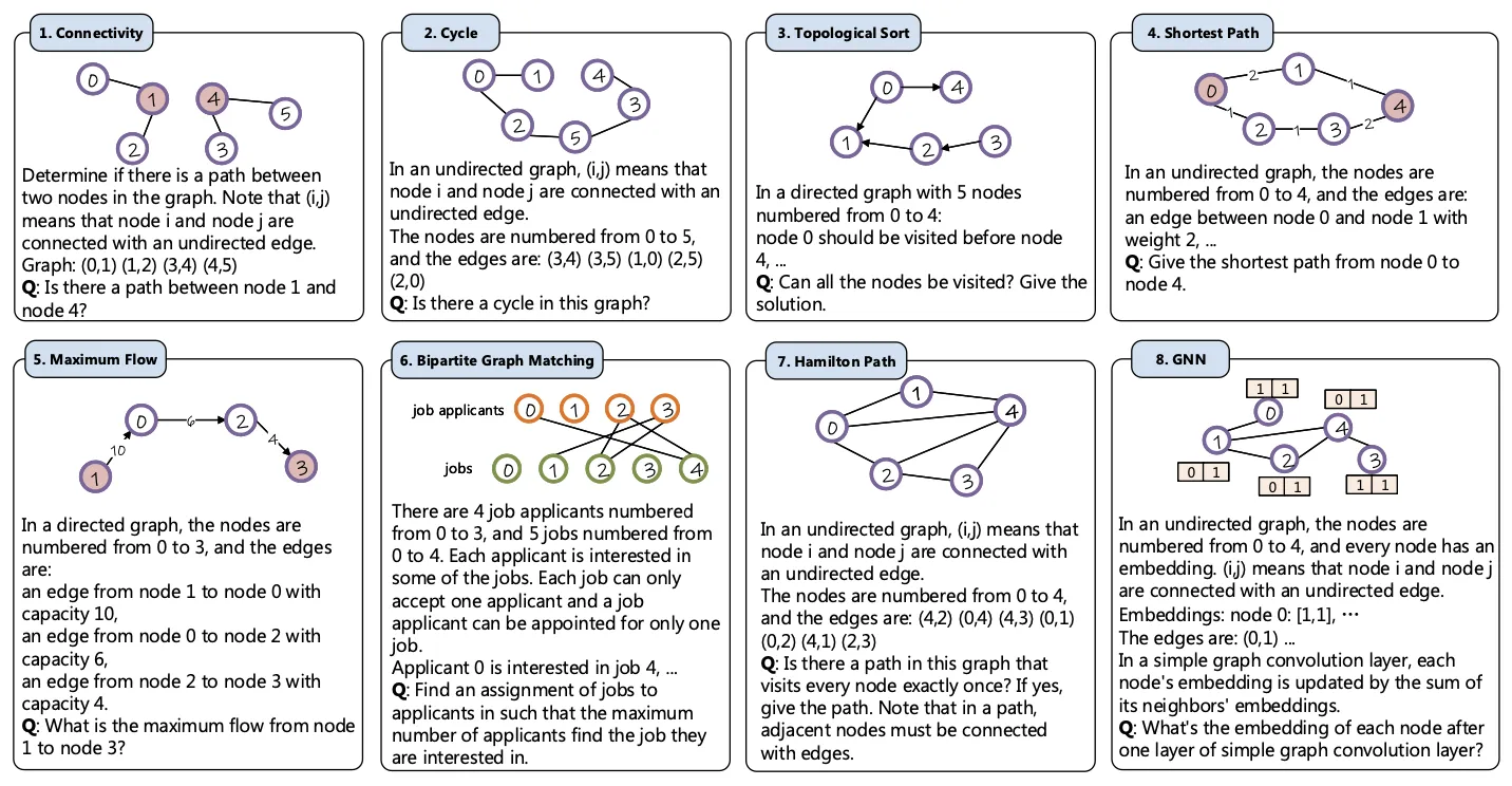 先前工作NLGraph提出了8种与Graph结构相关的benchmark。这里挑选了前7个任务的训练集作为训练数据。